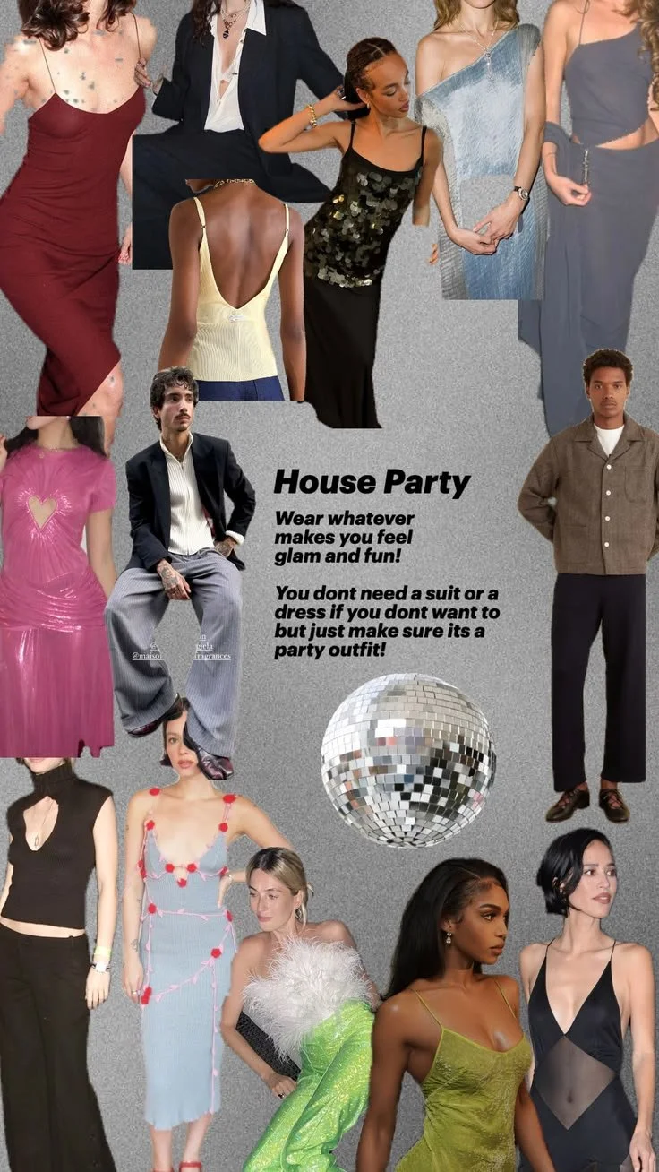 Copy here about what to wear. hwo the collage is only meant to inspire not bepresecriptive. HOUSE PART - FRIDAYCopy here about what to wear. hwo the collage is only meant to inspire not bepresecriptive. Iām Family, do i still have to RSVP?